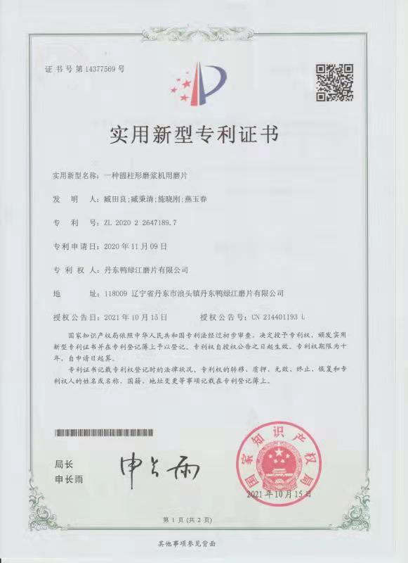 丹東鴨綠江磨片有限公司從事造紙磨漿、纖維板生產(chǎn)、淀粉制藥磨機(jī)磨片的生產(chǎn)制造,目標(biāo)盯牢產(chǎn)品的國內(nèi)、國際兩個(gè)市場,大力開展產(chǎn)品自主創(chuàng)新改進(jìn)的研究和生產(chǎn),獨(dú)立創(chuàng)新的幾何齒型,節(jié)能降耗、提高磨片使用功效,根據(jù)不同的制漿工藝、脫坯工藝、成板工藝等方面來特別設(shè)計(jì)相應(yīng)的齒型,量體裁衣,達(dá)到客戶使用要求。鴨綠江磨片有限公司為瑞豐紙業(yè)設(shè)計(jì)的68”節(jié)能高效磨片,僅在省電、高產(chǎn)這一項(xiàng)當(dāng)年就可為該企業(yè)節(jié)省資金2.2億元。2020年到目前,鴨綠江磨片有限公司提出各種專利申請11件,被授權(quán)9件,很多專利申請?jiān)趧?chuàng)意和設(shè)計(jì)上具有同行業(yè)領(lǐng)先地位,打破了國外同行業(yè)在一些技術(shù)上的壟斷,為國人爭光、為國家省外匯。專利《一種齒型變化的圓柱形磨漿機(jī)用磨片》是適用于圓柱形磨漿機(jī)的磨片,此前一直作為制漿工藝中紙漿的勻整工序使用,磨漿效果一般,資源沒有得到充分利用。齒型變化的圓柱形磨漿機(jī)用磨片在保留勻整功能外,通過齒形與溝槽寬度、數(shù)量、角度等的變化賦予了新的切斷、磨漿功能,較大、較長的纖維團(tuán)、纖維束被漸漸剪短、梳理、分絲帚化。變化的齒型還可以調(diào)整進(jìn)出口的漿料流量,調(diào)控、增強(qiáng)磨片磨漿效果。綜合性的磨片齒型功能使磨漿機(jī)磨漿范圍更廣泛、效果更佳、更經(jīng)濟(jì)。